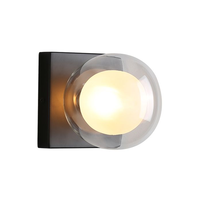 New Hollywood style surface mounted wall light range featuring black metal frame with dual glass shades.