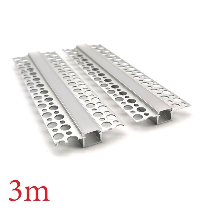 VCB015 Plasterboard Square Aluminium Profile with Diffuser - 3m