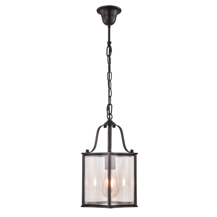 The New And stylish Bentwood Pendant is a black pendant light with a clear glass shade.Being suspended by a chain it has a simple, elegant design. The light bulb is visible inside the shade, casting a warm glow. The fixture would be a stylish addition to any modern or traditional home.