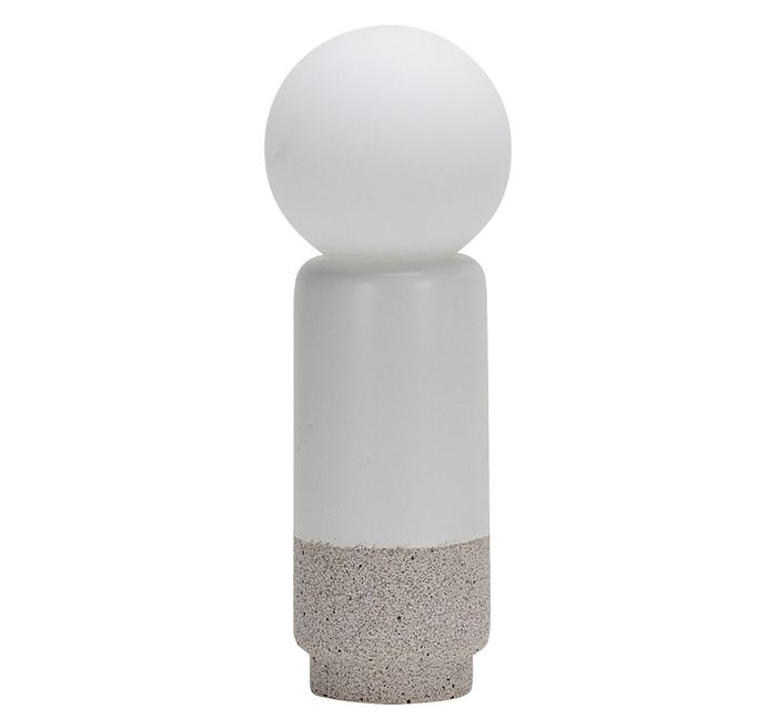 The new Art table lamp showcases aa a modern and minimalist table lamp. The lamp features a white, spherical shade atop a cylindrical base that transitions from a smooth white finish to a textured base. The simple yet elegant design creates a contemporary and sophisticated aesthetic. The lamp's clean lines and neutral color palette make it a versatile piece that can complement a variety of interior styles.